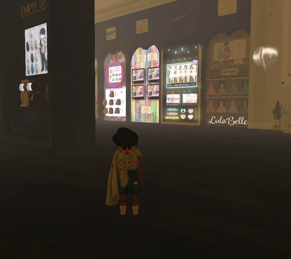 Twis a tute ebent. Bery tute! It first day so all flesh an smells wike new. But bery few boys clothes hewe too and that few bery expensive. So i played 2 gachas and call me lucky i gawt rares on bot first try!!! Yay. But no bery yay becos bot for girls. Tute unicoln blanket for shouldel flom Empty Spaces and tute unicoln backpack flom Dust. Each 50L. Bot tute bot fol gils. Any gils wan to change?