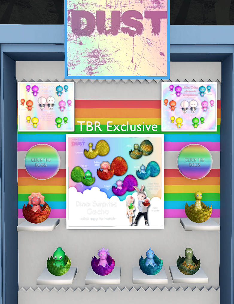 DUST dino suprise gacha cost only 50L. It has 6 different dino eggs that you click to make the dinos appear.