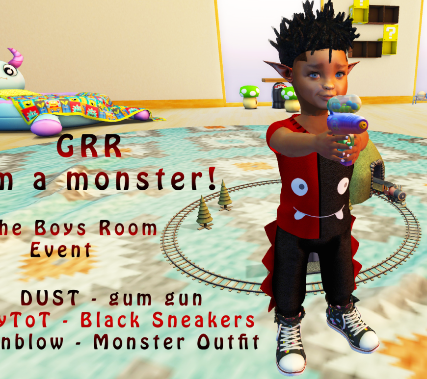 Dust – gum gun rare rainbow 50L gachaBoyToT – black sneakers 50L gachaRainblow – monster outfit 300L – for Bebe toddler & chonk, Youth & chonk, Toddleedoo with 6 colors HUD http://maps.secondlife.com/secondlife/Hyades/173/74/2752 Continue reading DUST, Rainblow & BoyToT